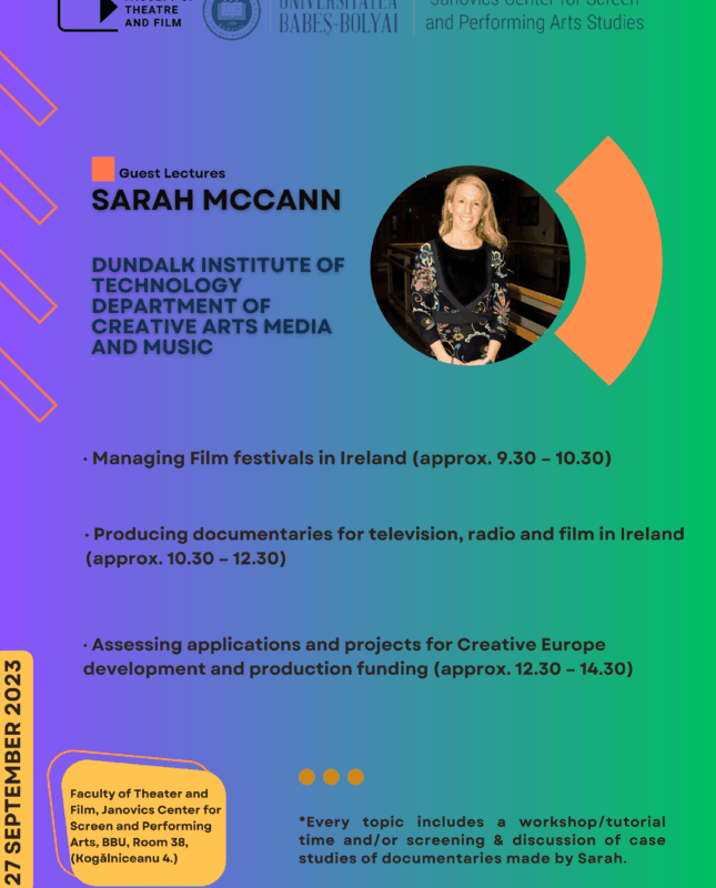 Ftf ERASMUS GUEST LECTURER SARAH MCCANN (DUNDALK INSTITUTE OF TECHNOLOGY) @ THE FACULTY OF THEATRE AND FILM September 26, 2023