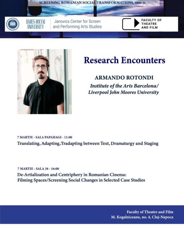 Ftf JANOVICS CENTER FOR SCREEN AND PERFORMING ARTS STUDIES INVITES YOU TO THE RESEARCH COLLOQUIUM PRESENTED BY ARMANDO ROTONDI March 1, 2023